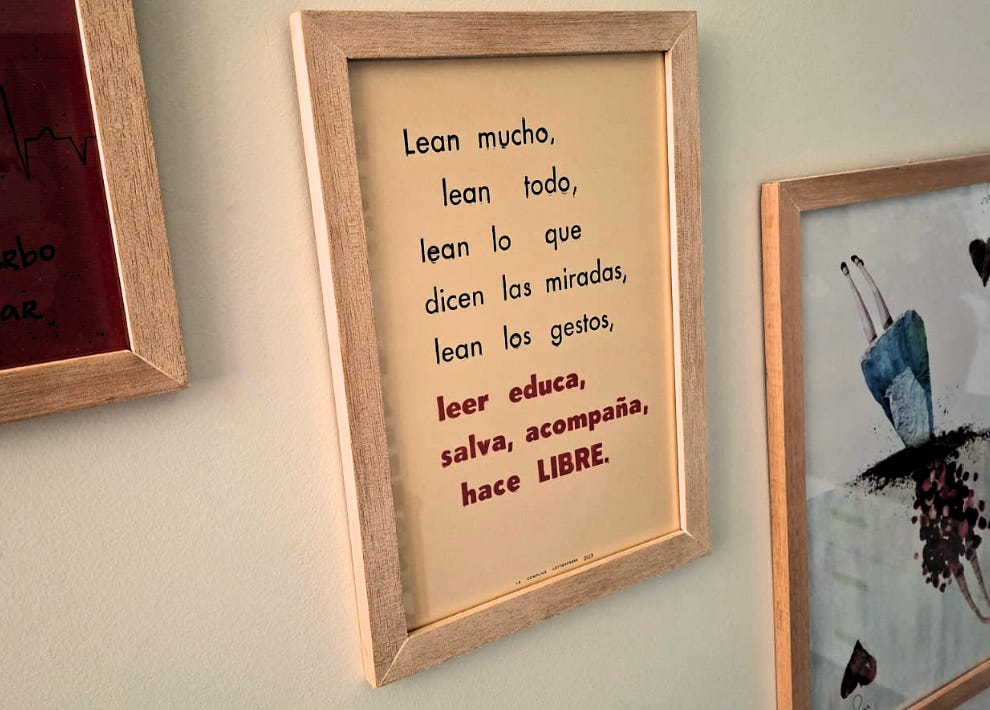 Essa semana, coloquei moldura em um poster que trouxe de Santiago ano passado. Tinha tempo que estava querendo colocar em um lugar que eu pudesse ver todos os dias esse lembrete de leitura: